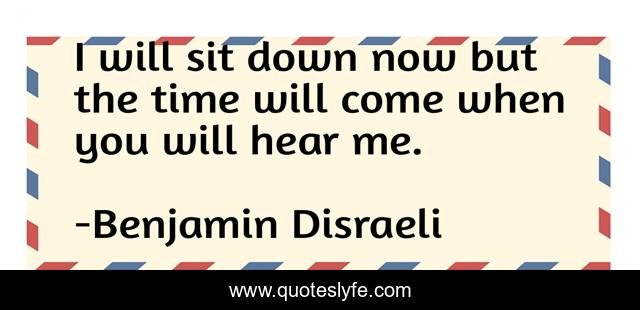 This page presents the quote "I will sit down now but the time will come when you will hear me.". Author of this quote is Benjamin Disraeli. .