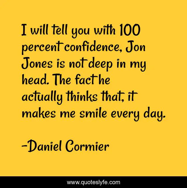 This page presents the quote "I will tell you with 100 percent confidence, Jon Jones is not deep in my head. The fact he actually thinks that, it makes me smile every day.". Author of this quote is Daniel Cormier. This quote is about confidence, day, deep,.