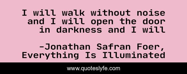 "Jonathan Safran Foer, Everything Is Illuminated Quotes." Quoteslyfe.com, 2025. Fri. 05 Dec. 2025. <https://www.quoteslyfe.com/quote/I-will-walk-without-noise-and-I-159806>.
