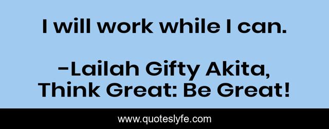 "Lailah Gifty Akita, Think Great: Be Great! Quotes." Quoteslyfe.com, 2025. Fri. 05 Dec. 2025. <https://www.quoteslyfe.com/quote/I-will-work-while-I-can-140488>.