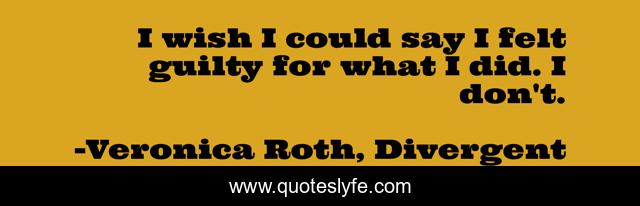 This page presents the quote "I wish I could say I felt guilty for what I did. I don't.". Author of this quote is Veronica Roth, Divergent. .