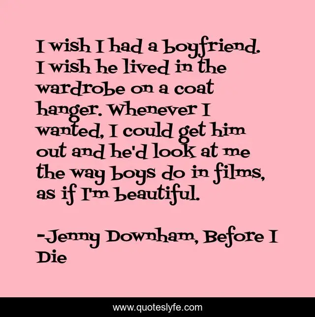 "Jenny Downham, Before I Die Quotes." Quoteslyfe.com, 2025. Mon. 08 Dec. 2025. <https://www.quoteslyfe.com/quote/I-wish-I-had-a-boyfriend-I-728>.