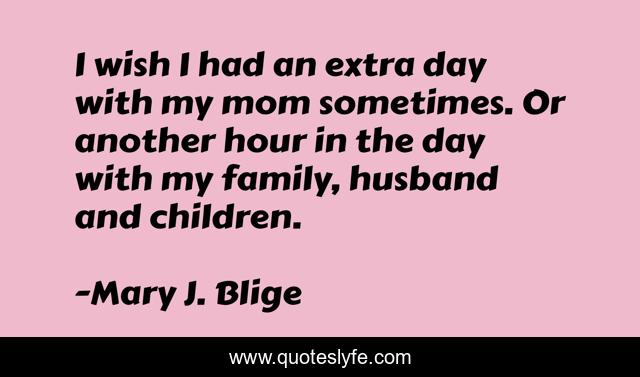 This page presents the quote "I wish I had an extra day with my mom sometimes. Or another hour in the day with my family, husband and children.". Author of this quote is Mary J. Blige. This quote is about children, family, day,.
