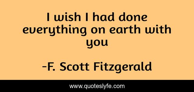 This page presents the quote "I wish I had done everything on earth with you". Author of this quote is F. Scott Fitzgerald. This quote is about beautiful, life, love, wish, everything, earth, with-you, classics, affection,.