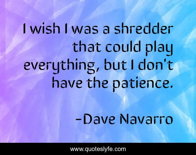 This page presents the quote "I wish I was a shredder that could play everything, but I don't have the patience.". Author of this quote is Dave Navarro. This quote is about wish, play, everything,.