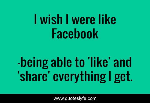 "being able to 'like' and 'share' everything I get. Quotes." Quoteslyfe.com, 2025. Sat. 06 Dec. 2025. <https://www.quoteslyfe.com/quote/I-wish-I-were-like-Facebook-236733>.
