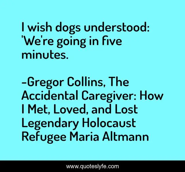 This page presents the quote "I wish dogs understood: 'We're going in five minutes.". Author of this quote is Gregor Collins, The Accidental Caregiver: How I Met, Loved, and Lost Legendary Holocaust Refugee Maria Altmann. .