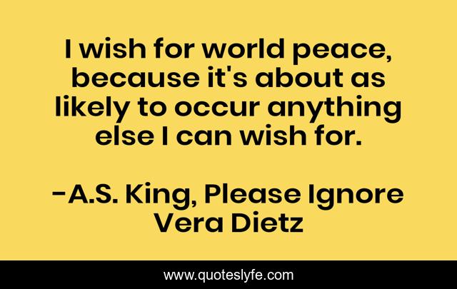 "A.S. King, Please Ignore Vera Dietz Quotes." Quoteslyfe.com, 2025. Tue. 09 Dec. 2025. <https://www.quoteslyfe.com/quote/I-wish-for-world-peace-because-it-234172>.