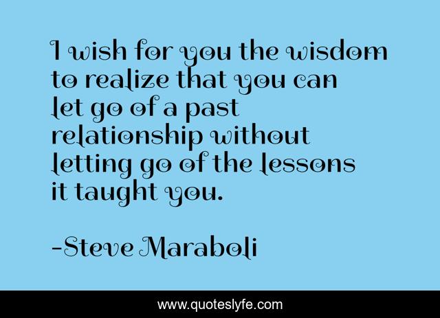 This page presents the quote "I wish for you the wisdom to realize that you can let go of a past relationship without letting go of the lessons it taught you.". Author of this quote is Steve Maraboli. This quote is about lessons, relationships, love, affection,.