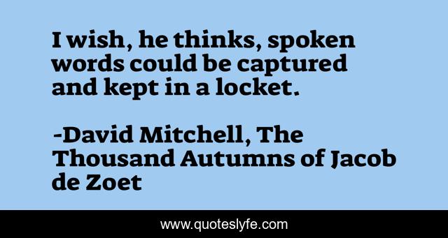 This page presents the quote "I wish, he thinks, spoken words could be captured and kept in a locket.". Author of this quote is David Mitchell, The Thousand Autumns of Jacob de Zoet. .