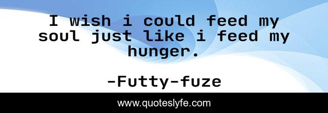 This page presents the quote "I wish i could feed my soul just like i feed my hunger.". Author of this quote is Futty-fuze. This quote is about thinking, wishful-thinking,.