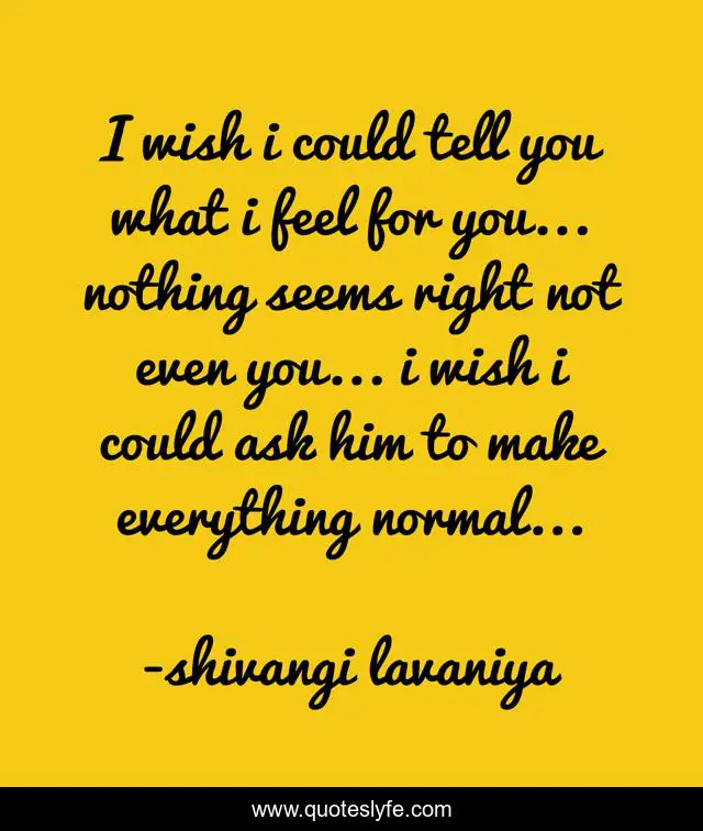 This page presents the quote "I wish i could tell you what i feel for you... nothing seems right not even you... i wish i could ask him to make everything normal...". Author of this quote is shivangi lavaniya. .
