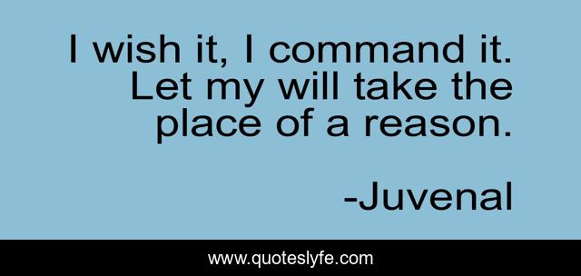 This page presents the quote "I wish it, I command it. Let my will take the place of a reason.". Author of this quote is Juvenal. This quote is about wish, reason, place,.