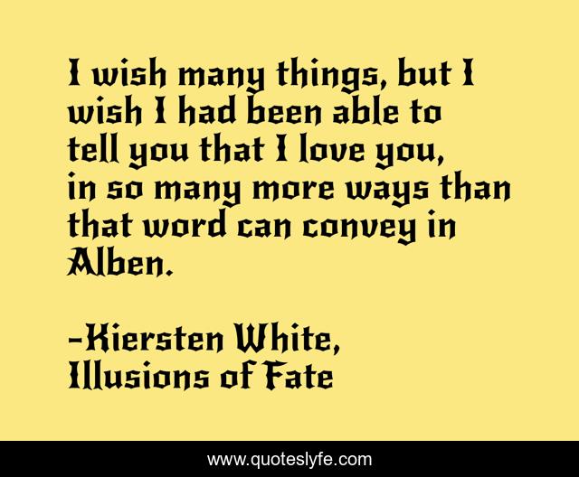"Kiersten White, Illusions of Fate Quotes." Quoteslyfe.com, 2025. Sun. 07 Dec. 2025. <https://www.quoteslyfe.com/quote/I-wish-many-things-but-I-wish-113120>.