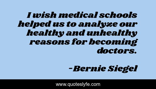 This page presents the quote "I wish medical schools helped us to analyze our healthy and unhealthy reasons for becoming doctors.". Author of this quote is Bernie Siegel. This quote is about healthy, wish, i wish,.