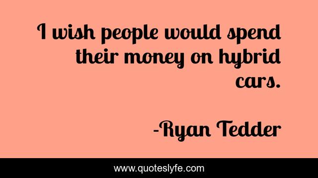This page presents the quote "I wish people would spend their money on hybrid cars.". Author of this quote is Ryan Tedder. This quote is about money, people, wish,.
