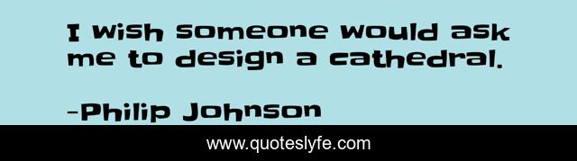 This page presents the quote "I wish someone would ask me to design a cathedral.". Author of this quote is Philip Johnson. This quote is about me, wish, ask,.