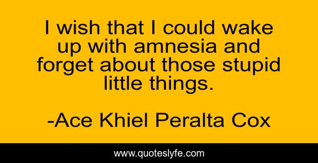 This page presents the quote "I wish that I could wake up with amnesia and forget about those stupid little things.". Author of this quote is Ace Khiel Peralta Cox. .