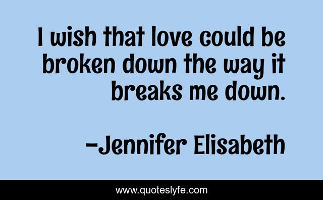 "Jennifer Elisabeth Quotes." Quoteslyfe.com, 2025. Mon. 08 Dec. 2025. <https://www.quoteslyfe.com/quote/I-wish-that-love-could-be-broken-107491>.