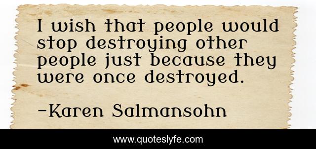 This page presents the quote "I wish that people would stop destroying other people just because they were once destroyed.". Author of this quote is Karen Salmansohn. This quote is about self-love, self-care,.