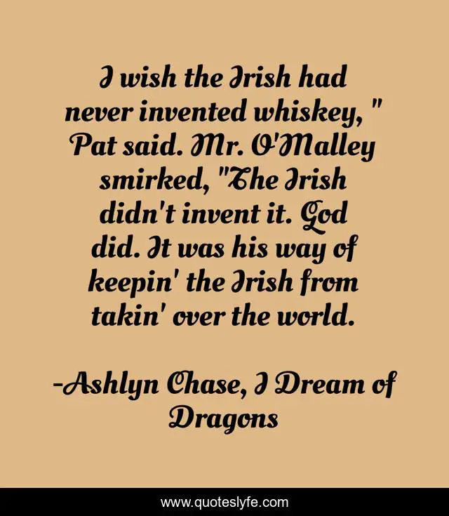"Ashlyn Chase, I Dream of Dragons Quotes." Quoteslyfe.com, 2025. Sun. 07 Dec. 2025. <https://www.quoteslyfe.com/quote/I-wish-the-Irish-had-never-invented-229679>.