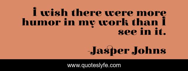 This page presents the quote "I wish there were more humor in my work than I see in it.". Author of this quote is Jasper Johns. This quote is about wish, see, work,.
