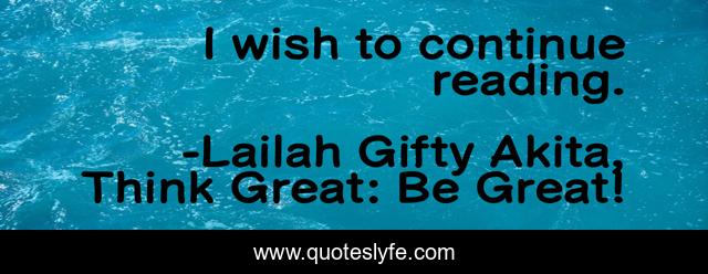 "Lailah Gifty Akita, Think Great: Be Great! Quotes." Quoteslyfe.com, 2025. Fri. 05 Dec. 2025. <https://www.quoteslyfe.com/quote/I-wish-to-continue-reading-92760>.