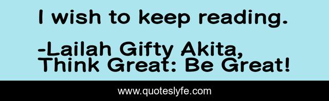 "Lailah Gifty Akita, Think Great: Be Great! Quotes." Quoteslyfe.com, 2025. Sat. 06 Dec. 2025. <https://www.quoteslyfe.com/quote/I-wish-to-keep-reading-34690>.