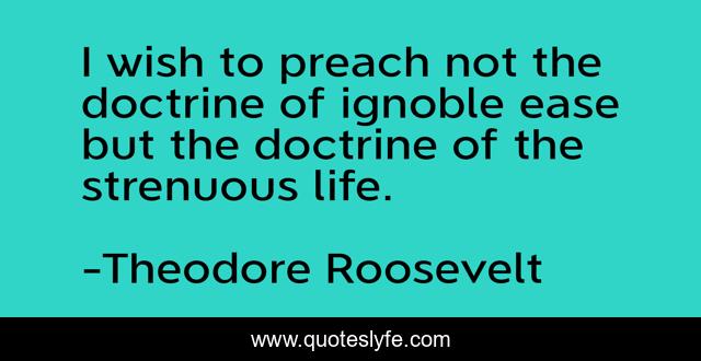 This page presents the quote "I wish to preach not the doctrine of ignoble ease but the doctrine of the strenuous life.". Author of this quote is Theodore Roosevelt. .