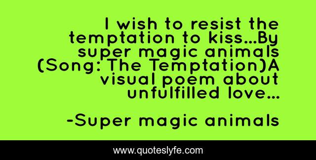 This page presents the quote "I wish to resist the temptation to kiss...By super magic animals (Song: The Temptation)A visual poem about unfulfilled love...". Author of this quote is Super magic animals. This quote is about poem, brocken-heart, love, collie, arts-by-mm-purmann, kissen, sogs, super-magic-animals, unfulfilled-love,.