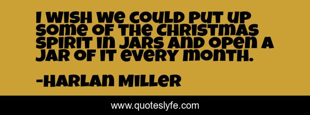 This page presents the quote "I wish we could put up some of the Christmas spirit in jars and open a jar of it every month.". Author of this quote is Harlan Miller. .