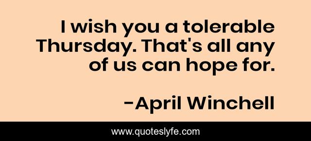 This page presents the quote "I wish you a tolerable Thursday. That's all any of us can hope for.". Author of this quote is April Winchell. This quote is about wish, thursday,.