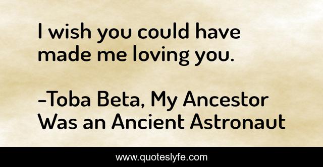 "Toba Beta, My Ancestor Was an Ancient Astronaut Quotes." Quoteslyfe.com, 2025. Mon. 08 Dec. 2025. <https://www.quoteslyfe.com/quote/I-wish-you-could-have-made-me-178897>.