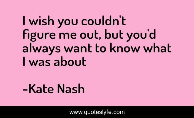 This page presents the quote "I wish you couldn't figure me out, but you'd always want to know what I was about". Author of this quote is Kate Nash. This quote is about mystery, love, affection,.
