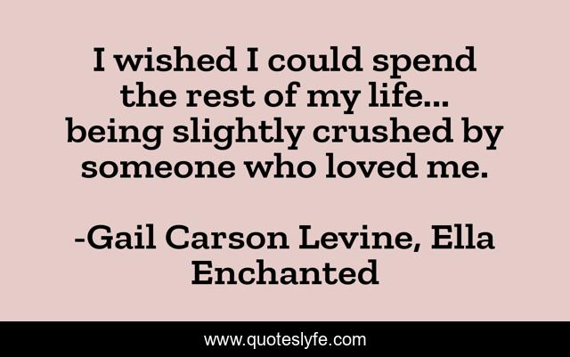 This page presents the quote "I wished I could spend the rest of my life... being slightly crushed by someone who loved me.". Author of this quote is Gail Carson Levine, Ella Enchanted. This quote is about closeness, intimacy, embrace, hugs,.