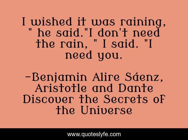 "Benjamin Alire Sáenz, Aristotle and Dante Discover the Secrets of the Universe Quotes." Quoteslyfe.com, 2025. Mon. 08 Dec. 2025. <https://www.quoteslyfe.com/quote/I-wished-it-was-raining-he-said-196807>.