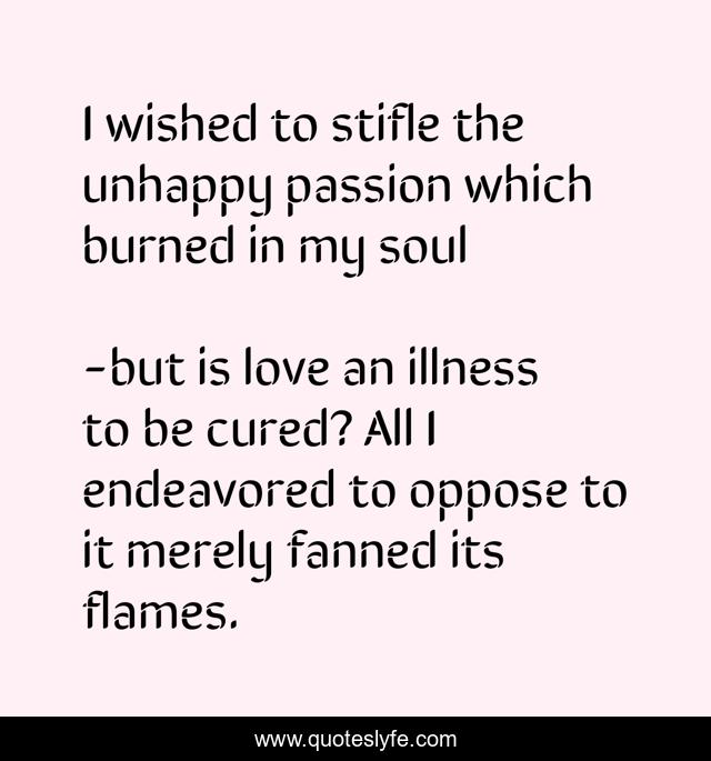 "but is love an illness to be cured? All I endeavored to oppose to it merely fanned its flames. Quotes." Quoteslyfe.com, 2025. Sat. 06 Dec. 2025. <https://www.quoteslyfe.com/quote/I-wished-to-stifle-the-unhappy-passion-92504>.