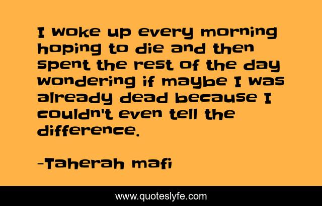This page presents the quote "I woke up every morning hoping to die and then spent the rest of the day wondering if maybe I was already dead because I couldn't even tell the difference.". Author of this quote is Taherah mafi. This quote is about death, hoping, di, dead, morning, 244, difference,.