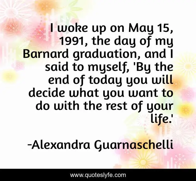 This page presents the quote "I woke up on May 15, 1991, the day of my Barnard graduation, and I said to myself, 'By the end of today you will decide what you want to do with the rest of your life.'". Author of this quote is Alexandra Guarnaschelli. This quote is about life, myself, today,.