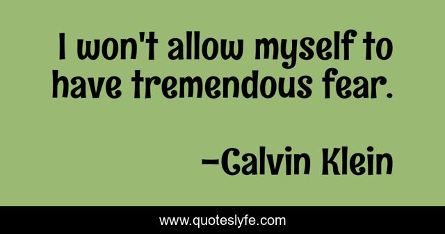 This page presents the quote "I won't allow myself to have tremendous fear.". Author of this quote is Calvin Klein. This quote is about tremendous, myself, allow,.