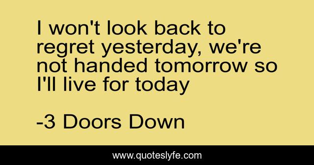This page presents the quote "I won't look back to regret yesterday, we're not handed tomorrow so I'll live for today". Author of this quote is 3 Doors Down. .