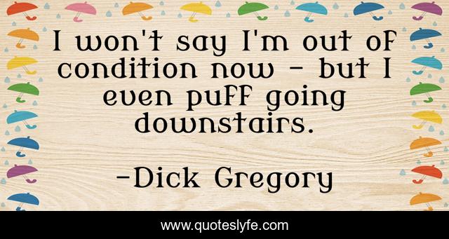 This page presents the quote "I won't say I'm out of condition now - but I even puff going downstairs.". Author of this quote is Dick Gregory. .