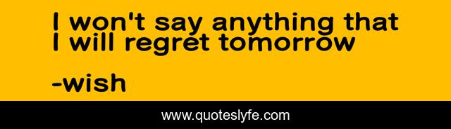 This page presents the quote "I won't say anything that I will regret tomorrow". Author of this quote is wish. This quote is about enthusiasm, regrets, inspirational,.