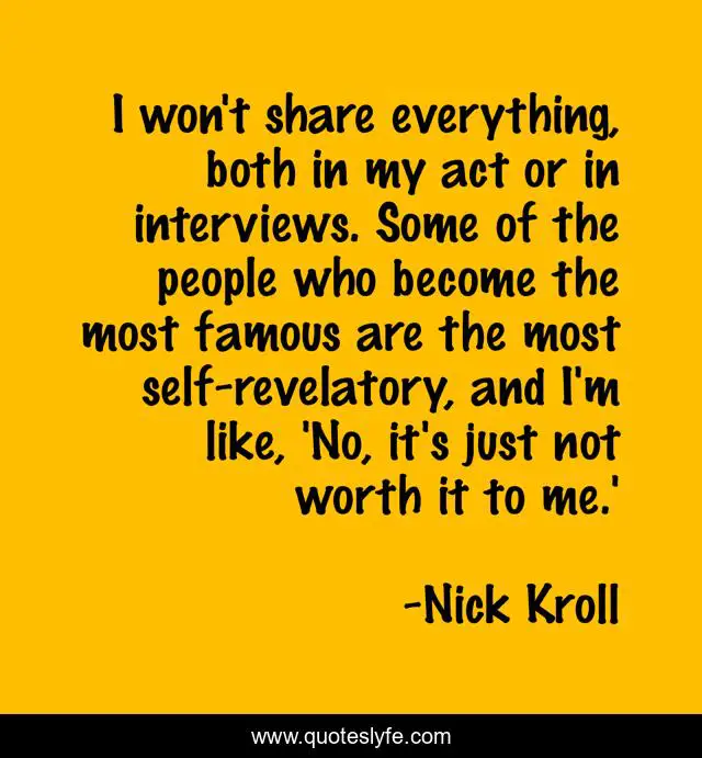 This page presents the quote "I won't share everything, both in my act or in interviews. Some of the people who become the most famous are the most self-revelatory, and I'm like, 'No, it's just not worth it to me.'". Author of this quote is Nick Kroll. This quote is about me, people, worth it,.