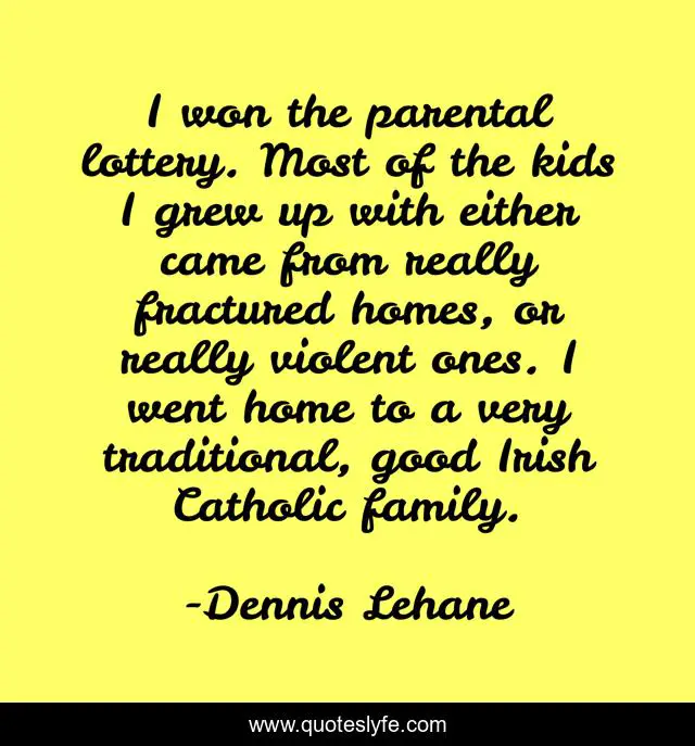 This page presents the quote "I won the parental lottery. Most of the kids I grew up with either came from really fractured homes, or really violent ones. I went home to a very traditional, good Irish Catholic family.". Author of this quote is Dennis Lehane. This quote is about home, good, kids,.