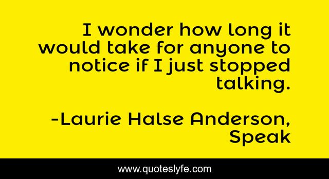 This page presents the quote "I wonder how long it would take for anyone to notice if I just stopped talking.". Author of this quote is Laurie Halse Anderson, Speak. .