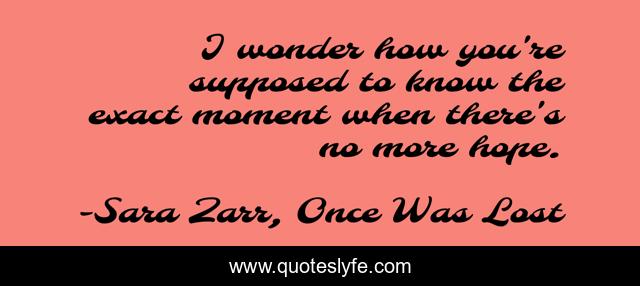 This page presents the quote "I wonder how you're supposed to know the exact moment when there's no more hope.". Author of this quote is Sara Zarr, Once Was Lost. .