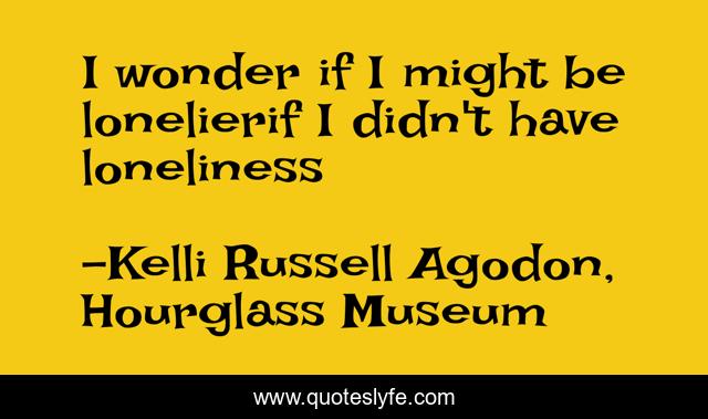 This page presents the quote "I wonder if I might be lonelierif I didn't have loneliness". Author of this quote is Kelli Russell Agodon, Hourglass Museum. This quote is about loneliness, lonely, poetry,.