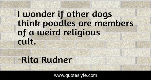 This page presents the quote "I wonder if other dogs think poodles are members of a weird religious cult.". Author of this quote is Rita Rudner. .