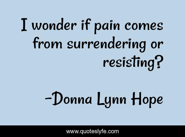 This page presents the quote "I wonder if pain comes from surrendering or resisting?". Author of this quote is Donna Lynn Hope. This quote is about resisting, surrender, pain, temptation,.